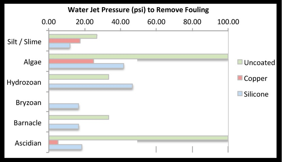 Figure 1: Average water-jet pressure required to remove the major fouling categories from the different net treatments.